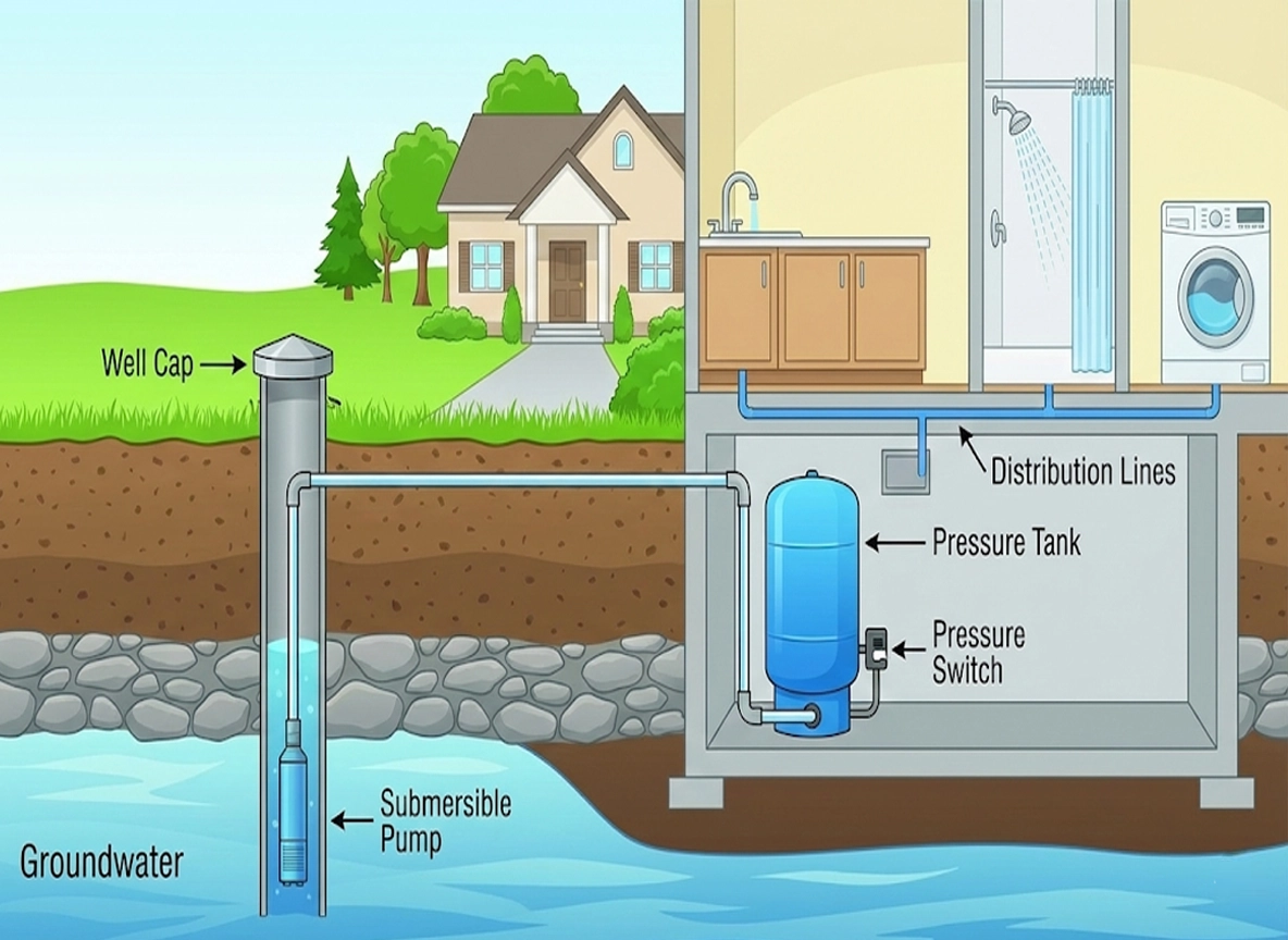 Once water is drawn from the well, it typically moves into a pressure tank. This tank is more than just storage—it ensures that water is delivered to your home at a steady pressure. The tank uses air pressure to push water through your plumbing, helping prevent your pump from running constantly. Some homes also have additional storage tanks to ensure you have water on demand during heavy usage or maintenance. At Bryant’s, we inspect and maintain these tanks to prevent leaks, pressure drops, or contamination.
